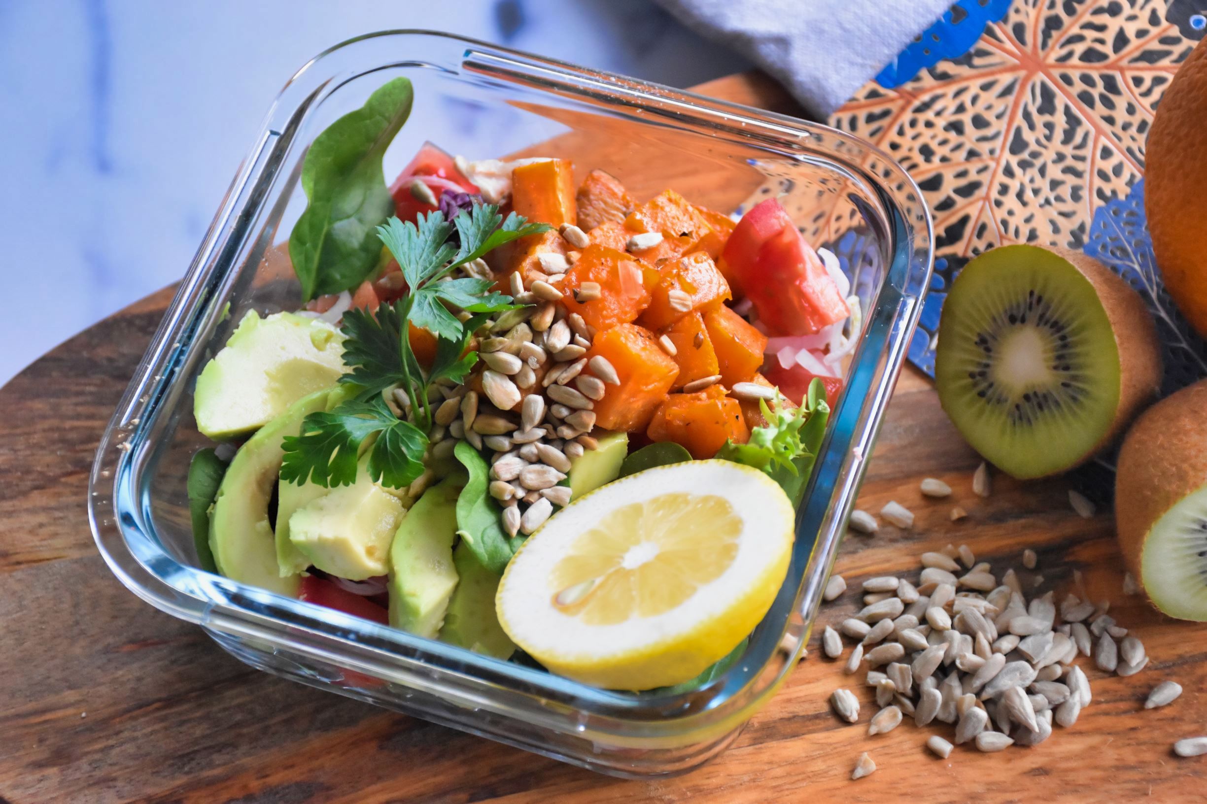 Pożywna sałata z pieczonym batatem i awokado idealna na lunch